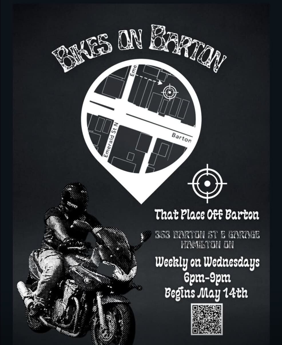 Weekly Wednesday bike nights at the place off Barton. Head north on emerald and first immediate right to get behind posted address. Starting May 14th